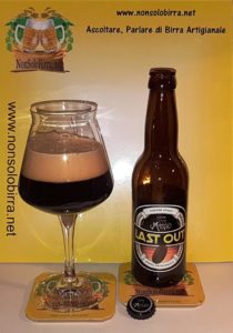 Versata si presenta colore nero impenetrabile, la schiuma colore beige forma un cappello denso e cremoso con buona persistenza, al naso note di caffè, cioccolato, liquirizia e frutta secca, in bocca l’attacco e morbido con note di caffè e cioccolato che accompagnano fino alla fine, corpo morbido con buona struttura, la leggera acidità presente, accompagna la nota di caffè, ingrediente principale della LAST OUT, che viene prodotta con aggiunta di una miscela di caffè arabica, prodotta da una torrefazione Marchigiana – ROM CAFFE’ -, è ben dosata, la si avverte ma non va a coprire i sentori di cioccolato, liquirizia, frutta secca, nel finale escono note fruttate, e una media amaricatura.